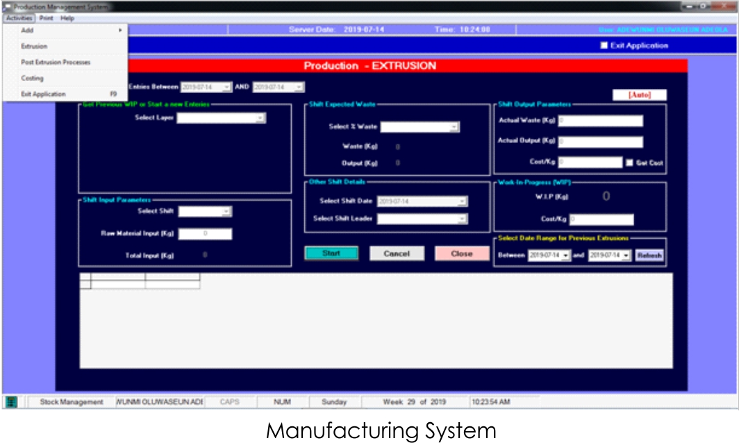 Our MS monitors the processes for transforming tangible inputs (raw materials, semi-finished goods, subassemblies) and intangible inputs (ideas, information, knowledge) into goods or services (output) that are suitable for use or has exchange value, e.g. transformation of Resins into various polythene products such as plain rolls, plain nylon, poly bags, etc.